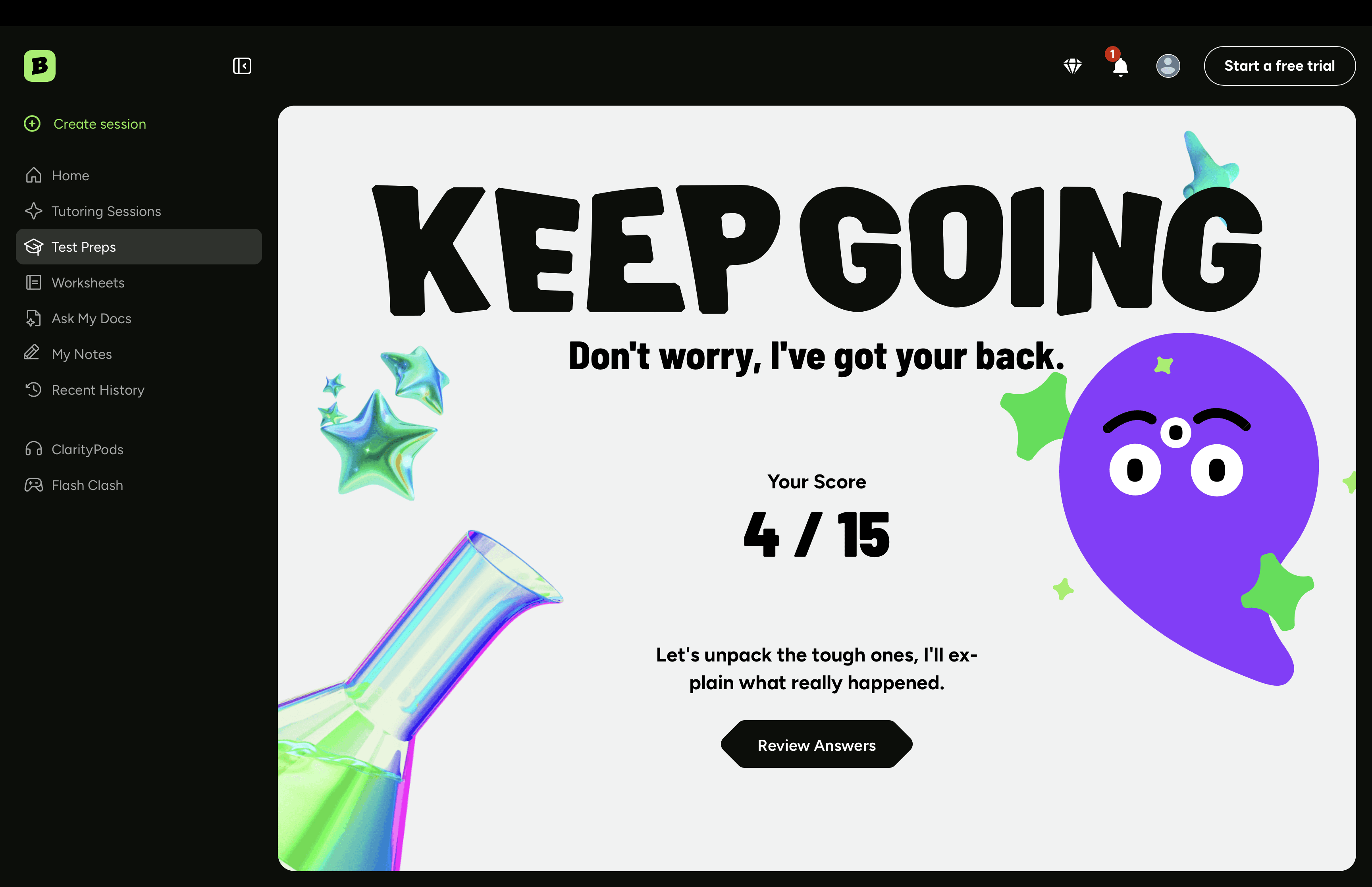 I led design end-to-end on Brainly Test Prep, an AI feature that turns the homework students already do into a personalized, adaptive study plan. No flashcards to build. No "where do I even start" panic the night before an exam.